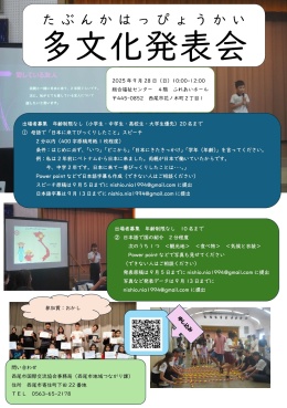 TEL : 052-954-6102 / FAX : 052-971-8736 Eメール:tabunka@pref.aichi.lg.jp
