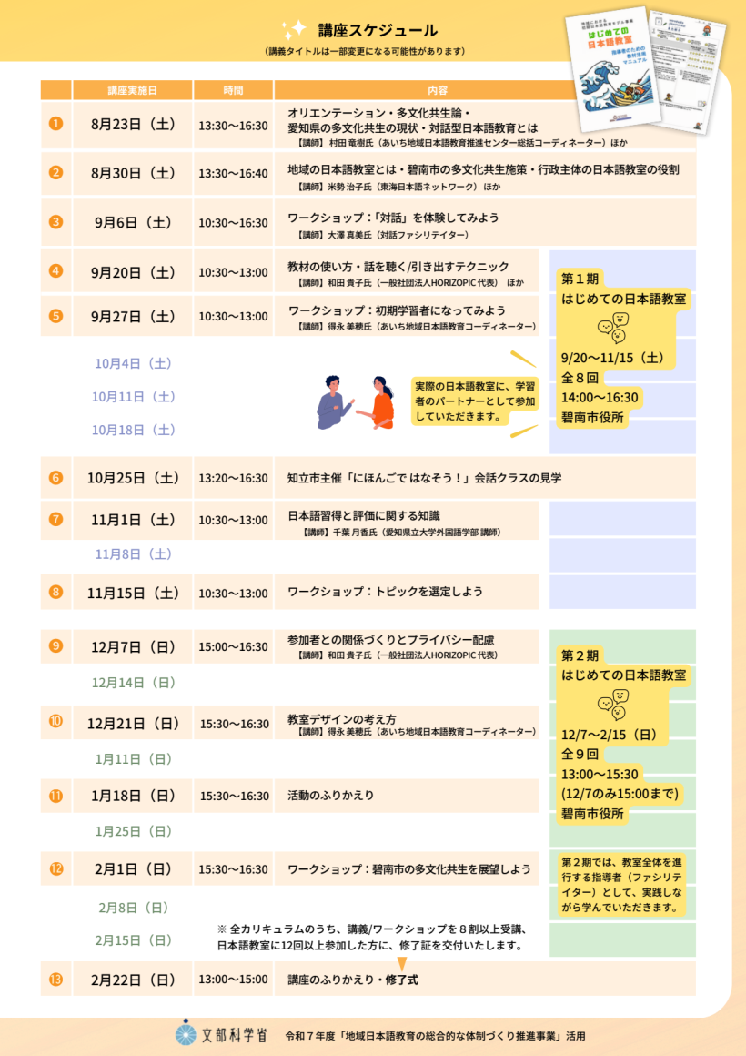 愛知県主催の初期日本語教育指導者養成講座が碧南市で開催されます。