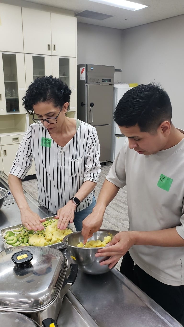 当日はペルーとベトナム出身の学習者さんが先生となり、教えてもらいながら協力してそれぞれの料理を作りました。
