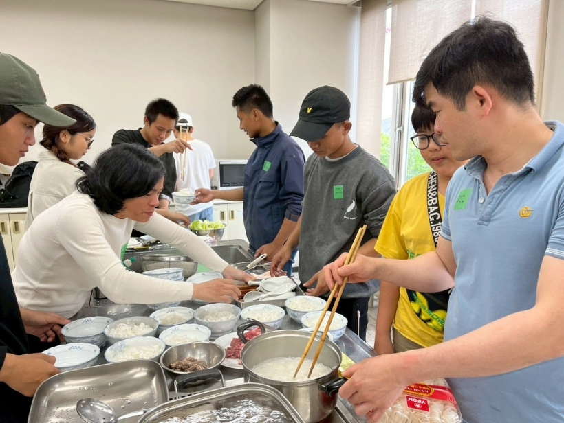 「牛肉のフォー」は、限られた時間で作るので、スープは市販のスープのもとを用意していました。しかし、本格的なものを食べてもらいたいと、学習者さんの一人がベトナム食材店でしょうがや八角、シナモンなどをすぐに調達してきてくださいました。お陰で、本当においしい牛肉フォーが出来上がりました。
