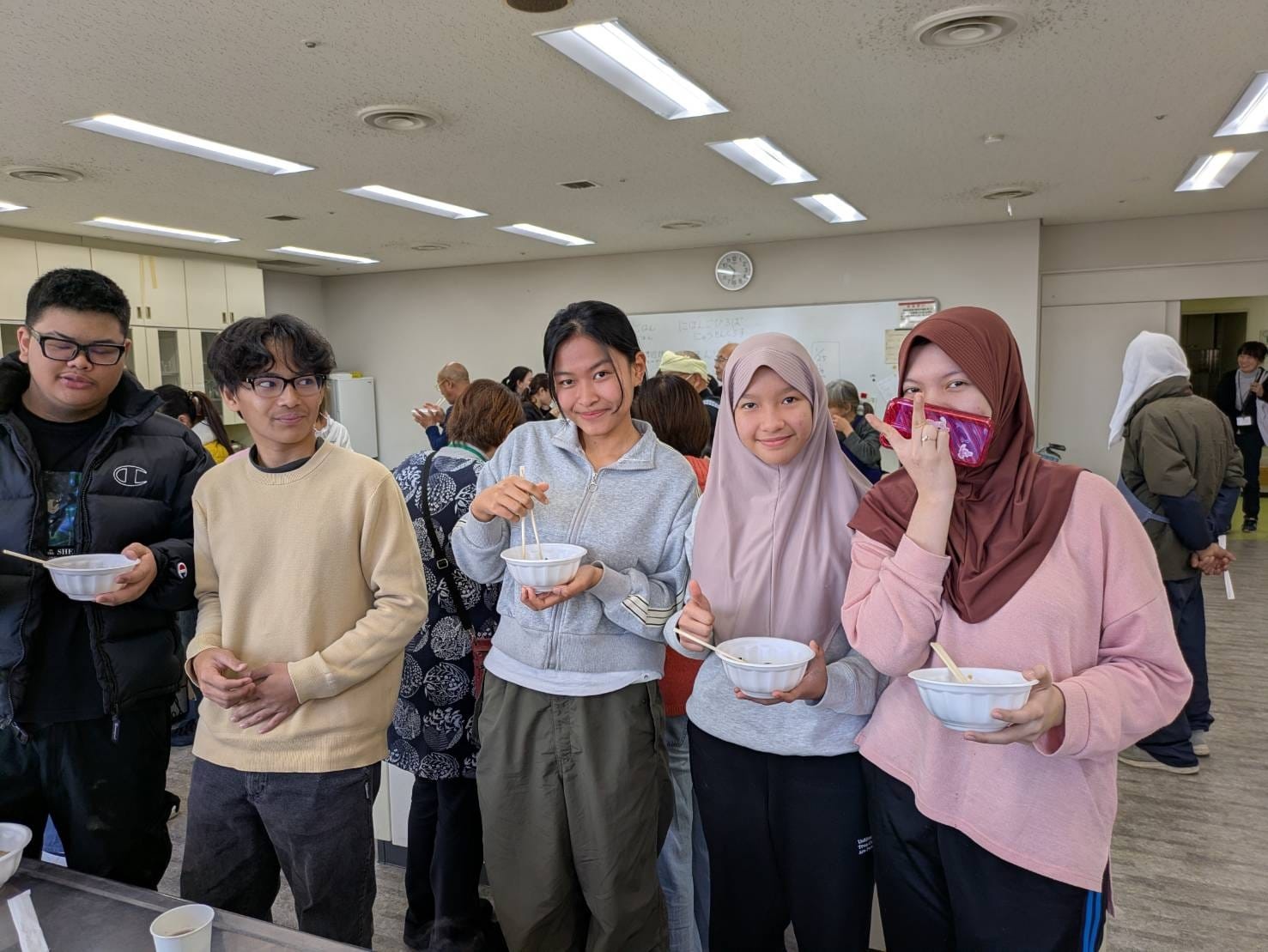 食べ終わってから、「一番おいしかった料理は?」と聞いてみると、「お汁粉!」という人がたくさんいました。甘い小豆の味が、自分の国の思い出とどこか重なったのかもしれません。