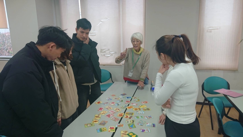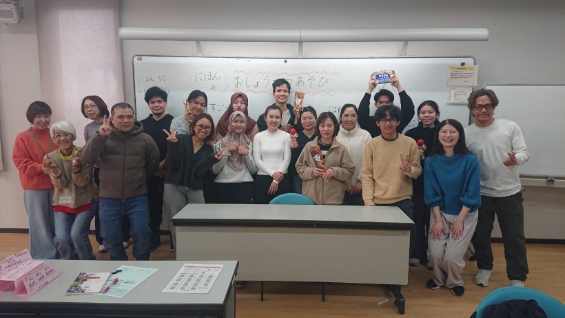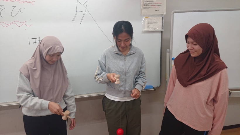 本日は年があけ初めての授業でしたので、生活日本語クラスでは、授業の後半で「日本のお正月遊び」を体験してもらいました。