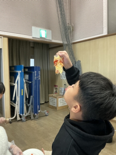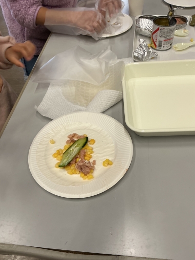 今回は、ベトナム家族のみの参加だったので、ベトナム人のおうちには必ずある、ライスペーパーを使ってサラダ巻きや、ピザを作って食べました。栄養バランスを意識した非常食でした。